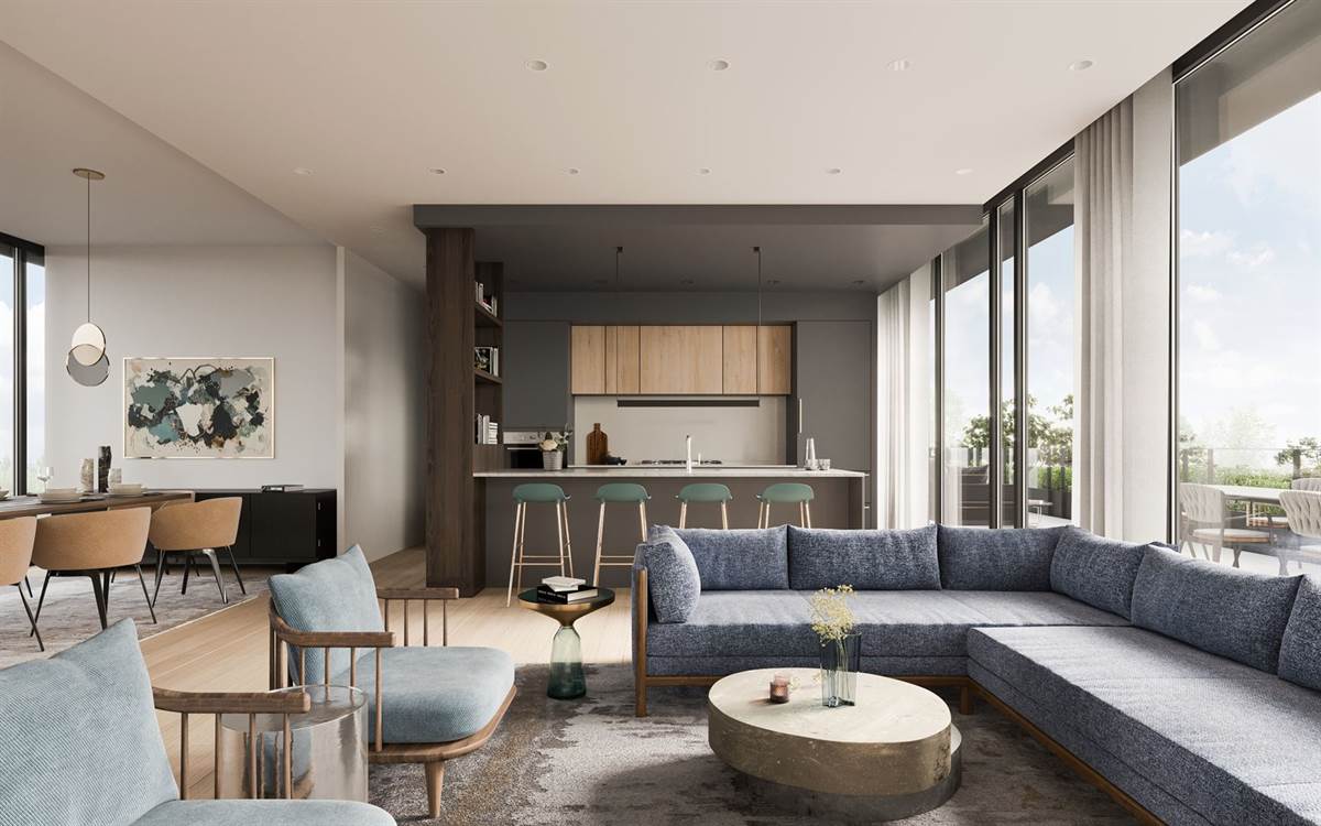 • Miele stainless steel appliances – 30’’ in 2, 3 and PH apartments. 24’’ in bedroom apartments including built-in oven, gas built-in cooktop and hood fan, built-in microwave, refrigerator, and dishwasher